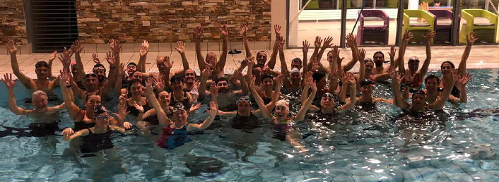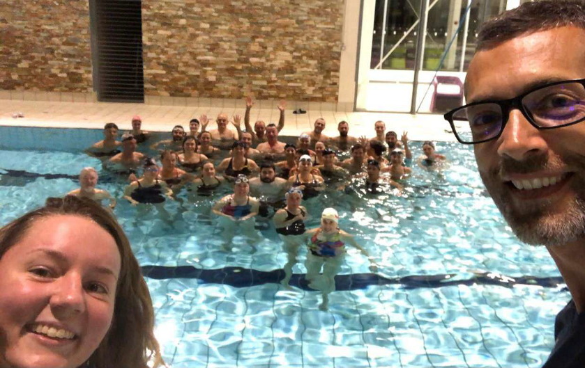 C’est dans la bonne humeur que les nageurs adultes loisirs se retrouvent chaque mercredi soir dans le bassin extérieur de l’Aquachoisel, coachés par Lucie et Pascal. Les premières secondes dans l’eau sont, il faut bien l’avouer, un peu fraîches… mais Lucie et Pascal savent rapidement y remédier grâce à un large éventail d’exercices dynamiques et variés.